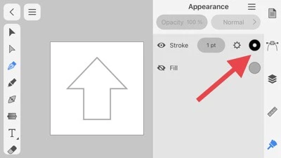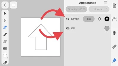 AppearanceパネルのStrokeの左にある目のアイコンを「表示」になるようタップし、Fillは「非表示」にします。