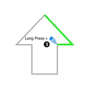やり直すには、画面を二本指でタップします。そして、水平の線を描くには、画面のどこかを長押ししながら頂点をタップすると線が水平になります。