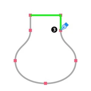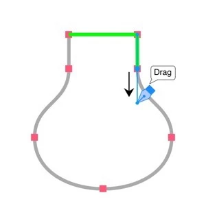 次の頂点をタップして、下方向にドラッグすると滑らかな曲線を描くことができます。