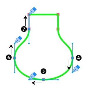 ベクターグラフィックソフトウェア(Adobe Illustrator, Inkscape, etc.)で、描く曲線の書き方です。