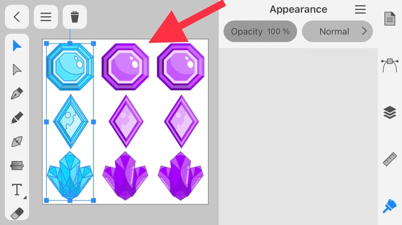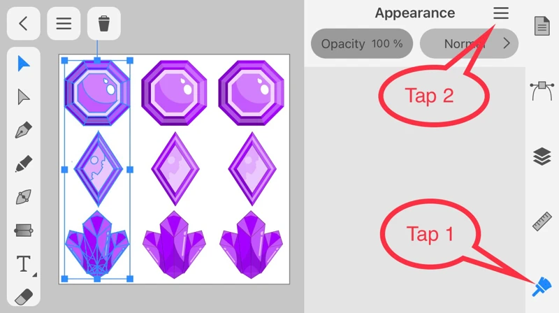 はけのアイコンをタップし、Appearanceパネルを開きます。