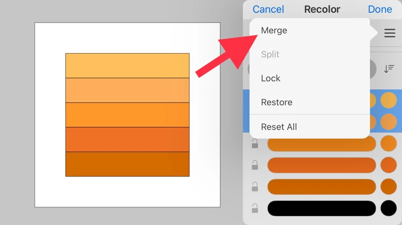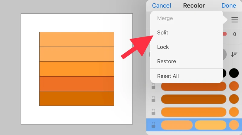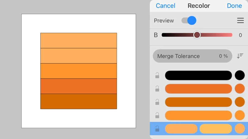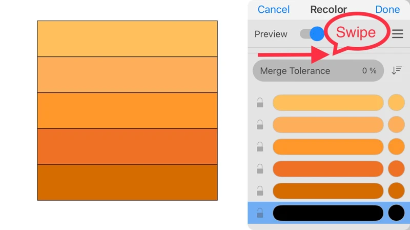 Recolorパネルに切り替わりましたら、Hのスライダーを右にスワイプしてみます。